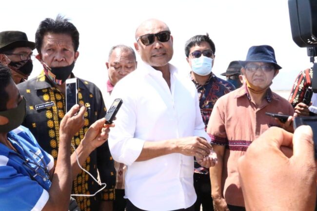 OELAMASI, FLOBAMORA-SPOT.COM – Gubernur NTT Viktor Bungtilu Laiskodat mengatakan, produksi garam industri yang dilakukan di Provinsi Nusa Tenggara Timur akan membantu memenuhi kebutuhan garam nasional dan sebagai bukti kemandirian dan kedaulatan rakyat. Hal tersebut disampaikannya pada saat memberikan keterangan pers usai melakukan pemantauan dan panen garam di Desa Nunkurus dan Babau, Kecamatan Kupang Timur Kabupaten Kupang pada Kamis 15 Oktober 2020.