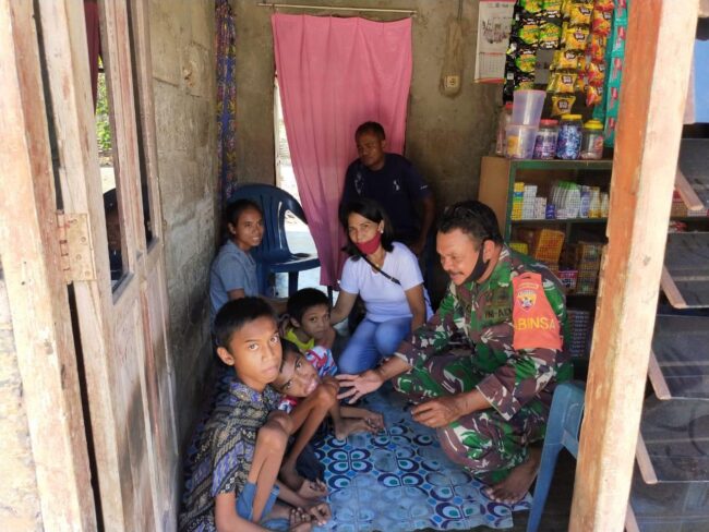 OELAMASI, FLOBAMORA-SPOT.COM – Babinsa Koramil 1604-06/Batakte Kodim 1604/Kupang  Serka Agapito beserta keluarganya memberikan santunan kepada anak yatim piatu di Dusun Tuadale Kecamatan Kupang Barat Kabupaten Kupang, Rabu (21/10/20).