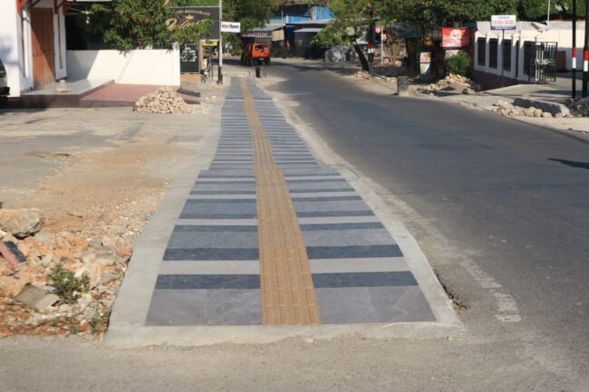 Trotoar yang dibangun saat ini sesuai standar nasional yakni tidak hanya sebagai akses warga normal namun juga memberikan kemudahan bagi kaum difabel apabila melintas.