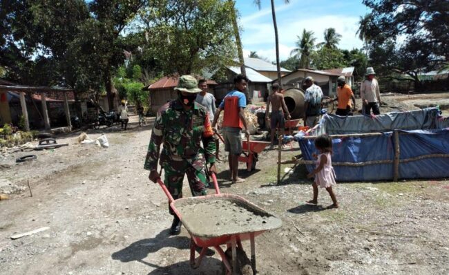 Plh. Danramil 1604-01/Kupang Mayor Inf Dadi Gunawan menyampaikan kegiatan gotong royong membantu masyarakat ini merupakan bentuk kepedulian TNI terhadap kesulitan masyarakat, sehingga kedatangan TNI dalam pelaksanaan karya bakti ini adalah sebagai penyemangat untuk bersama-sama membangun daerahnya.