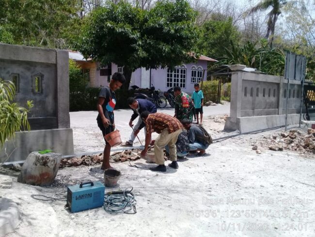 Kegiatan itu spontan pada saat Serda Yohanes Pereira yang bertugas menjadi Bintara Pembina Desa (Babinsa) Desa Naunu melaksanakan anjangsana sambil melakukan pemantauan di desa binaan dan melihat sedang ada pengerjaan membuat pagar kantor Desa sehingga Babinsa langsung turun membantu.