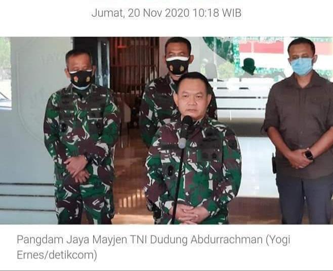 “Ada berbaju loreng menurunkan baliho Habib Rizieq itu perintah saya. Karena berapa kali Pol PP menurunkan, dinaikkan lagi. Perintah saya itu,” kata Mayjen Dudung, Jumat (20/11/2020).
