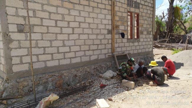 OELAMASI, FLOBAMORA-SPOT.COM – Dalam rangka mewujudkan kemanunggalan dengan warga yang ada di daerah binaan, Babinsa Koramil 1604-04/Amarasi Sertu Verson Luis Manu membantu membuat besi slof yang akan digunakan untuk pondasi rumah salah satu warga binaannya milik Keluarga Musa Ora warga di RT. 005 RW. 003 Desa Apren Kecamatan Amarasi Kabupaten Kupang, Senin (23/11).