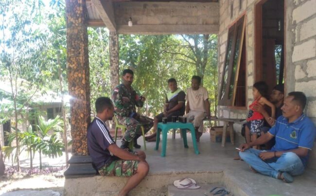 OELAMASI, FLOBANORA-SPOT.COM – Guna mendukung ketahanan pangan, Bintara Pembina Desa (Babinsa) Koramil 1604-04/Amarasi Serka Frans Sn melaksanakan komunikasi sosial (Komsos) dengan petani warga binaannya, salah satunya adalah Wem Otemusu bertempat di RT. 005 RW. 003 Kelurahan Teunbaun Kecamatan Amarasi Barat Kabupaten Kupang, Rabu (25/11).