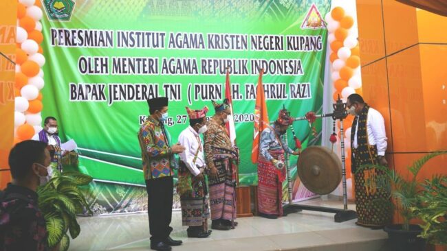 Sebelumnya Menteri Agama RI, Jenderal TNI (Purn) H. Fachrur Razi beserta rombongan dalam kunjungan kerja di Kota Kupang Provinsi Nusa Tenggara Timur meresmikan kampus Institut Agama Kristen Negeri (IAKN) Kupang yang sebelumnya adalah Sekolah Tinggi Agama Kristen Negeri (STAKN). Pengalihan status STAKN menjadi IAKN ini menjadi bentuk kepedulian pemerintah terhadap pendidikan di Kota Kupang terkhusus pendidikan keagamaan.