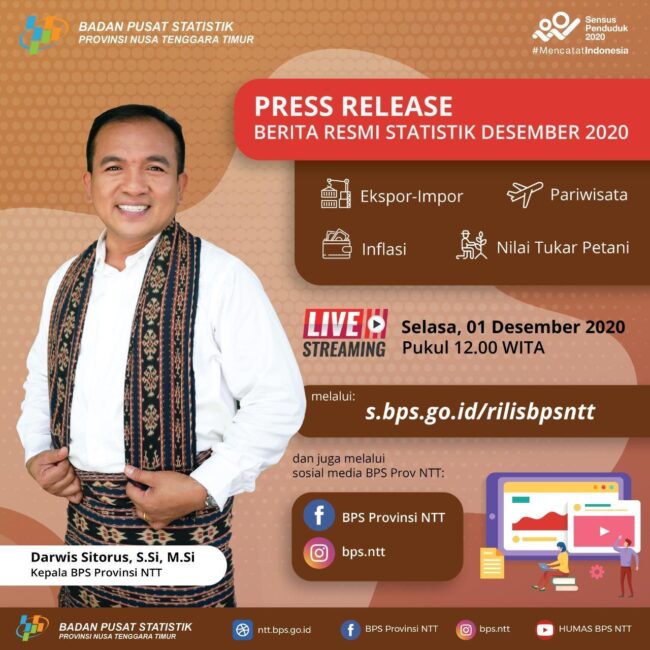 “Pada bulan Oktober 2020 TPK hotel Bibtang sebesar 36,53 persen, naik 1,73 poin dibanding TPK September yang sebesar 34,80 persen”, terang Kepala BPS NTT Darwis Sitorus dalam Jumpa Pers Bulan Desember 2020 Selasa (1/12) secara virtual.