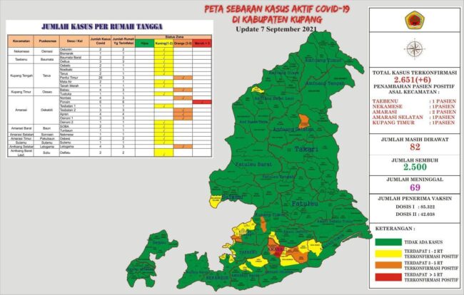 Jumlah specimen RT-PCR yang dikirim ke Laboratorium sejak tanggal 1 januari – 8 September 2021 sebanyak: 4189 spesimen. Jumlah specimen penduduk berdomisili di Kabupaten Kupang sebanyak: 3480.