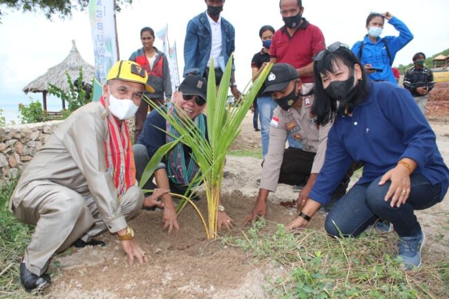 Bupati Kupang Korinus Masneno menyatakan apresiasi atas terlaksananya kegiatan menanam anakan kelapa Hijau dan anakan kurma yang dilakukan bersama-sama masyarakat, para guru dan siswa sekolah dilokasi pantai Teres.