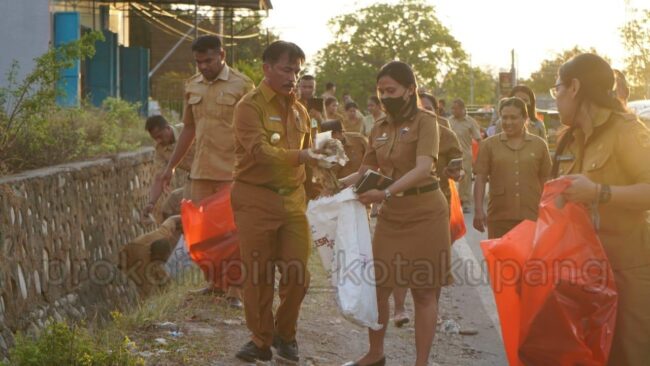 Usai berdialog dengan para tokoh dan perwakilan warga, Penjabat Wali Kota bersama seluruh peserta pertemuan berkesempatan untuk kerja bakti bersama, memungut sampah plastik di sepanjang jalan Timor Raya yang masuk dalam wilayah Kelurahan Lasiana.