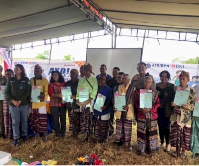 Selain zoom meeting dan pemancangan pilar batas, pada kesempatan tersebut dilaksanakan pula penyerahan Sertifikat Hak Milik kepada warga masyarakat setempat.