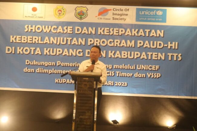 Yudi Yewangoe Kepala Unicef NTT dalam sambutannya mengapresiasi Pemerintah Kabupaten Kupang yang memiliki semangat dan kesungguhan membangun generasi terbukti dengan pelaksanaan dan kebijakan PAUD HI dilaksanakan sampai sekarang.