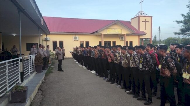 OELAMASI, FLOBAMORA-SPOT – Kepala Kepolisian Resor Kupang AKBP Anak Agung Gde Anom Wirata, S.I.K, M.H memberikan motovasi kepada ratusan calon siswa (casis) pada Panitia Bantuan Penerimaan Polres Kupang, hari Selasa (2/5/2023) petang.