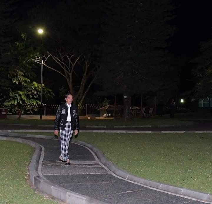 Selesai santap malam dan berinteraksi dengan pedagang dan para Paspampres, Presiden kembali ke dalam Wisma Bayurini.