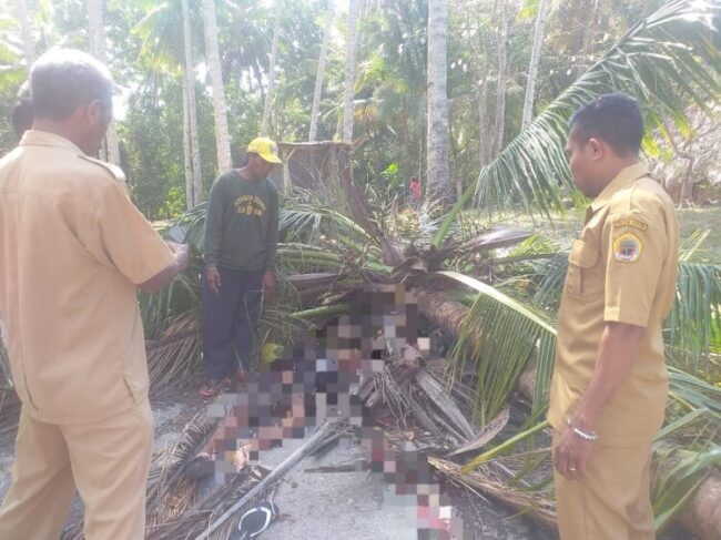 OELAMASI, FLOBAMORA-SPOT – Naas bagi Elu Januar Liu (17) warga RT 04 RW 02 Desa Oenoni II. Korban yang masih berstatus Pelajar itu tewas seketika, saat sebuah pohon kelapa tumbang menimpa dirinya, Senin (11/9) siang.