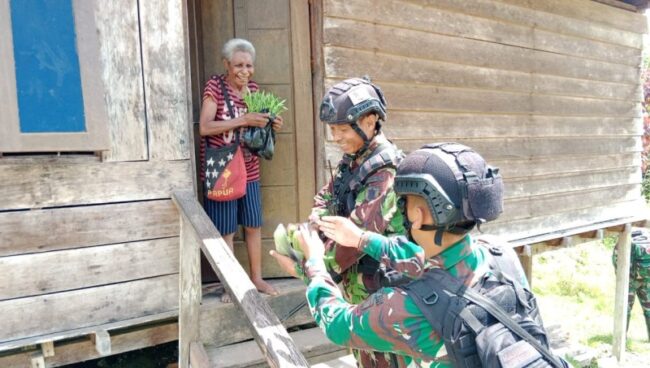 Danpos Konja Lettu Inf Kristian Laiskodat menyampaikan, kegiatan bagi sayuran merupakan bagian dari kepedulian anggota satgas pamtas di wilayah Papua kepada masyarakat.