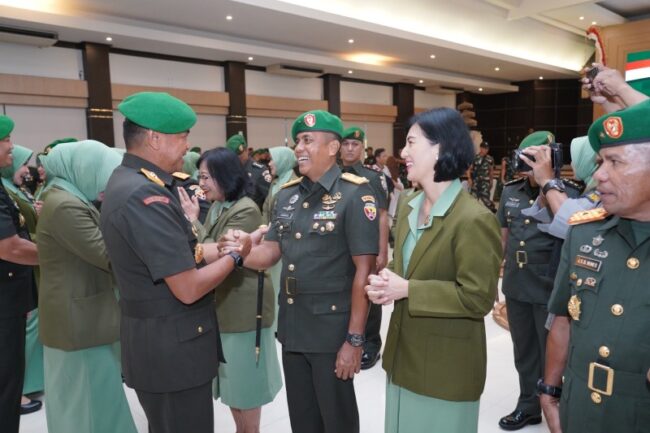 DENPASAR, FLOBAMORA-SPOT – Pangdam IX/Udayana Mayjen TNI Harfendi, S.I.P., M.Sc pimpin Acara serah terima jabatan dan tradisi laporan korps Pejabat Kodam IX/Udayana. Salah satunya Danrem 161/Wira Sakti di Hall Makodam IX/Udayana, Senin (19/02/2024).