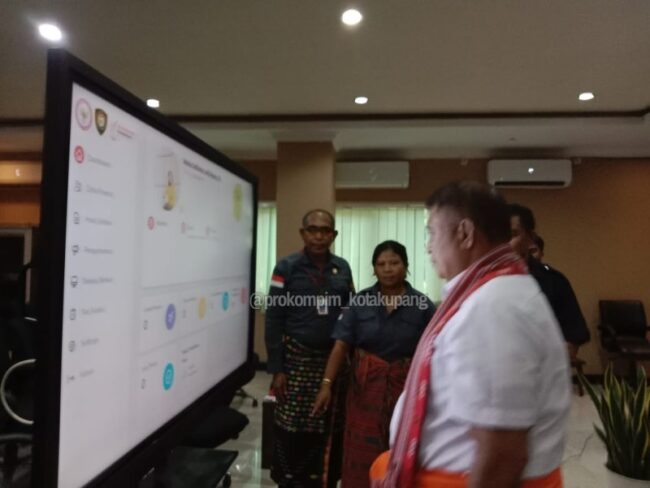 Launching ditandai dengan penekanan tombol pada layar oleh Penjabat Wali Kota Kupang didampingi pejabat yang hadir. (PKP_nit).