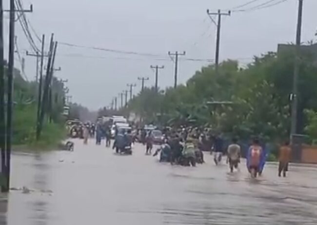 Tidak hanya merendam rumah warga, banjir juga mengaliri badan jalan Timor Raya, hingga Lantas Polres Kupang turun tangan.