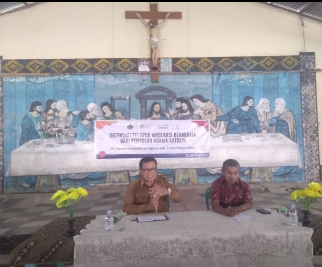 KEFAMENANU, FLOBAMORA-SPOT – Dalam upaya penguatan dan pengamalan nilai Moderasi Beragama dalam kehidupan iman umat, Wakil Bupati Kabupaten Timor Tengah Utara (TTU) Drs. Eusabius Binsasi ajak para Penyuluh Agama Katolik (PAK) Kementrian Agama TTU yang adalah agen pastoral untuk selalu menjadi obor dan suluh di tempat tugas masing-masing melalui kegiatan Orientasi Pelopor Moderasi Beragama Bagi PAK tingkat Kemenag Kabupaten TTU.