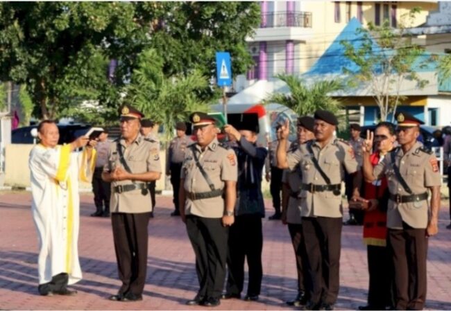 OELAMASI, FLOBAMORA-SPOT — Kepala Kepolisian Resor Kupang AKBP Anak Agung Gde Anom Wirata, S.I.K., M.H memimpin upacara pelantikan dan serah terima jabatan 3 kasat di Polres Kupang dan 3 kapolsek jajaran Selasa (21/5) petang.