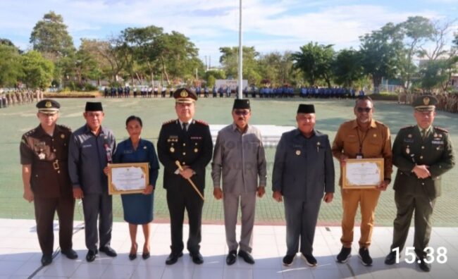 Upacara peringatan hari lahir Pancasila kali ini diwarnai penyerahan penghargaan atas 2 (dua) inovasi Pemerintah Kota Kupang yang berhasil meraih prestasi pada Kompetisi inovasi pelayanan publik (KOIN-YANLIK) tahun 2023 yang diselenggarakan Pemerintah Provinsi Nusa Tenggara Timur. Penghargaan tersebut diberikan kepada 2 (dua) perangkat daerah atas inovasi-inovasi yang dikembangkan antara lain AKOE (sistem absensi pegawai online untuk reformasi birokrasi berdampak), dikembangkan oleh Badan Kepegawaian, Pendidikan dan Pelatihan Daerah (BKPPD) Kota Kupang, berhasil meraih top 20 inovasi pelayanan publik dan sistem informasi penghematan BBM (SI HEBAT) yang dikembangkan oleh Badan Keuangan dan Aset Daerah (BKAD) Kota Kupang bekerja sama dengan Pertamina untuk pengisian BBM kendaraan dinas menggunakan Barcode dan berhasil meraih top 10 dalam KOIN-YANLINK. Penghargaan tersebut diserahkan langsung oleh Penjabat Wali Kota Kupang disaksikan oleh seluruh peserta upacara. (PKP_rdp/nt)