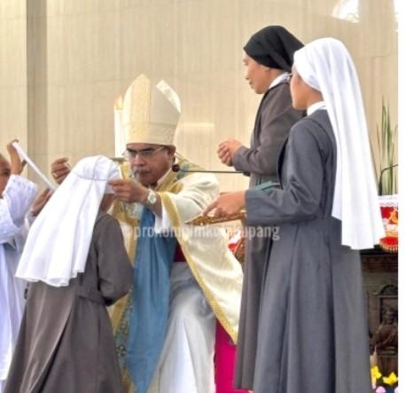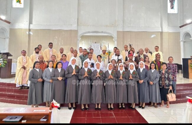 KUPANG, FLOBAMORA-SPOT – Penjabat Wali Kota Kupang, Fahrensy P. Funay, SE.,M.Si menghadiri Misa Kaul Pertama 6 Biarawati Kongregasi Puteri-Puteri Cinta Kasih Dari Darah Mulia (DCPB).