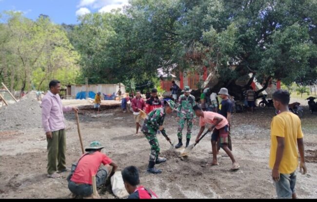 NTT, FLOBAMORA-SPOT – Untuk kesekian kalinya Pos Aplal Satgas Yonkav 6/Naga Karimata bantu masyarakat membangun berbagai fasilitas.