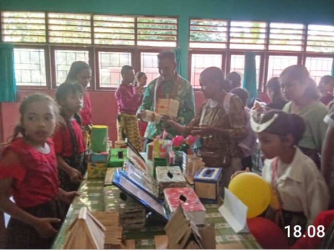 KUPANG, FLOBAMORA-SPOT – Stand pameran hasil karya siswa-siswi kelas V SD Negeri Bello Kecamatan Maulafa Kota Kupang nampak ramai pengunjung.