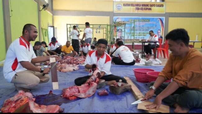 KUPANG, FLOBAMORA-SPOT – Ikatan Keluarga Minangkabau Saiyo Sakato (IKM-SS) Kupang melaksanakan pemotongan hewan kurban sebanyak 22 ekor sapi.