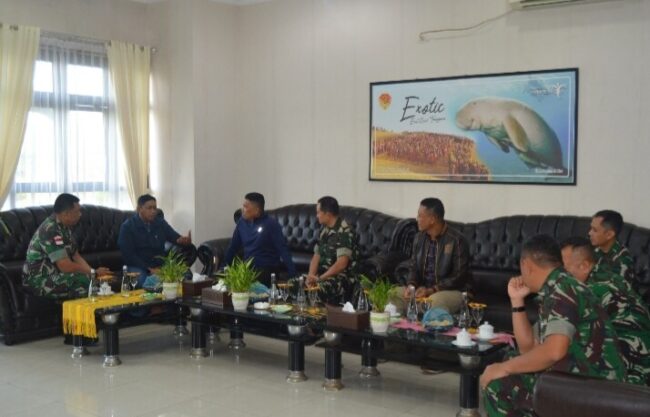 KUPANG, FLOBAMORA-SPOT – Kepala Staf Korem (Kasrem) 161/Wira Sakti Kolonel Inf Riko Haryanto, S.I.P, menerima Asisten Latihan Kepala Staf TNI Angkatan Darat Mayjen TNI J. Binsar Parluhutan Sianipar di Kolat (Komando Latihan) Latihan Lapangan Penanggulangan Bencana Alam Gempa Bumi dan Tsunami Korem 161/Wira Sakti, Senin (14/10/24).