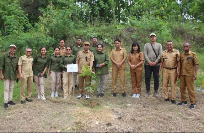OELAMASI, FLOBAMORA-SPOT – Untuk menyelamatkan sumber mata air, Penjabat Bupati melakukan penanaman pohon di bendungan Oeltua di desa Oeltua, Kecamatan Taebenu, Kabupaten Kupang, Senin (9/12).