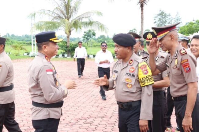 Personil yang baru saja naik pangkat juga secara bergantian memberikan ucapan selamat dan salam kepada Kapolres, menciptakan suasana akrab dan penuh kekeluargaan.