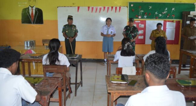 KUPANG, FLOBAMORA-SPOT — Komandan Korem 161/Wira Sakti Brigjen TNI Joao Xavier Barreto Nunes, S.E., M.M mengecek pelaksanaan Program Makan Siang Bergizi gratis bagi murid-murid di beberapa sekolah di Kabupaten Kupang Nusa Tenggara Timur (NTT).