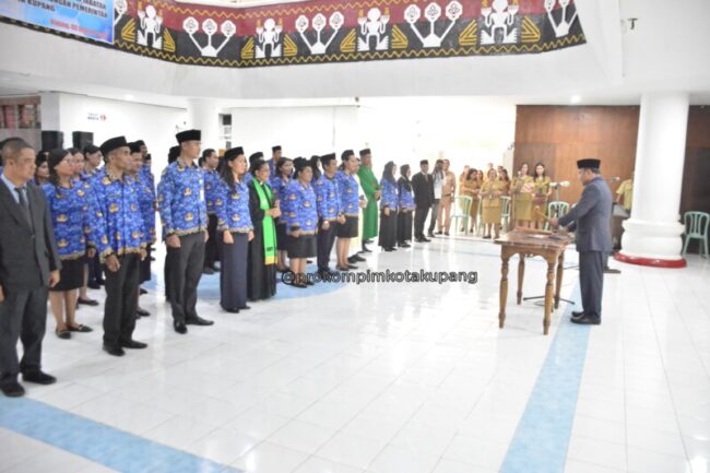 KUPANG, FLOBAMORA-SPOT — Pj. Wali Kota Kupang, Linus Lusi, S.Pd., M.Pd., melantik dan mengambil sumpah jabatan 70 pejabat fungsional di lingkungan Pemerintah Kota Kupang, Senin (3/2).