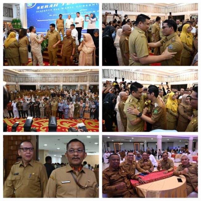 “Kita ini semua adalah pelayan, dan tugasnya melayani, kalau masyarakat perlu minum, kita sebagai pemerintah harus menyiapkan, kalau masyarakat butuh makan, kita perlu memastikan pasokannya. Butuh keamanan dan kenyamanan, kita bertugas memastikannya,” kata Bobby Nasution, saat pisah sambut dan serah terima jabatan Gubernur dan Wakil Gubernur Sumut di Aula Raja Inal Siregar, Kantor Gubernur, Jalan Diponegoro 30, Medan.