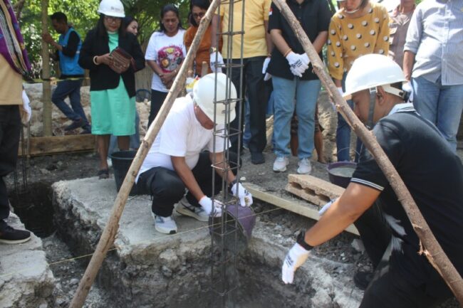 OELAMASI, FLOBAMORA-SPOT — Bupati Kupang, Yosef Lede, melakukan launching pembangunan 100 rumah layak huni di daerah Oli’o, Kelurahan Merdeka, Kecamatan Kupang Timur.