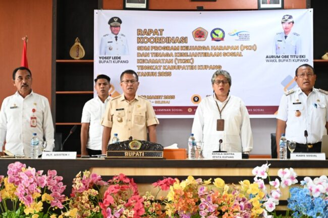 OELAMASI, FLOBAMORA-SPOT — Pemerintah Kabupaten Kupang mengadakan rapat koordinasi (rakor) bersama Tenaga Kesejahteraan Sosial Kecamatan (TKSK). Juga Sumber Daya Manusia Program Keluarga Harapan (SDM PKH) Tingkat Kabupaten Kupang Tahun 2025, di aula Kantor Bupati Kupang, Oelamasi.