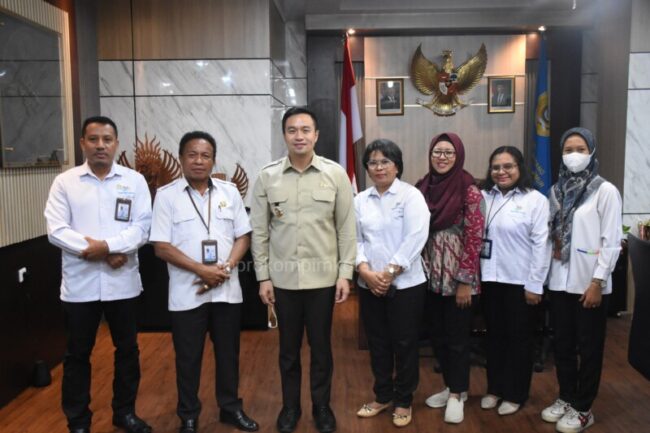 KUPANG, FLOBAMORA-SPOT — Wali Kota Kupang, dr. Christian Widodo, menerima kunjungan dari Kepala Badan Pusat Statistik (BPS) Kota Kupang, Patrisius Tupen Making, bersama jajaran di ruang kerjanya Selasa (22/4).