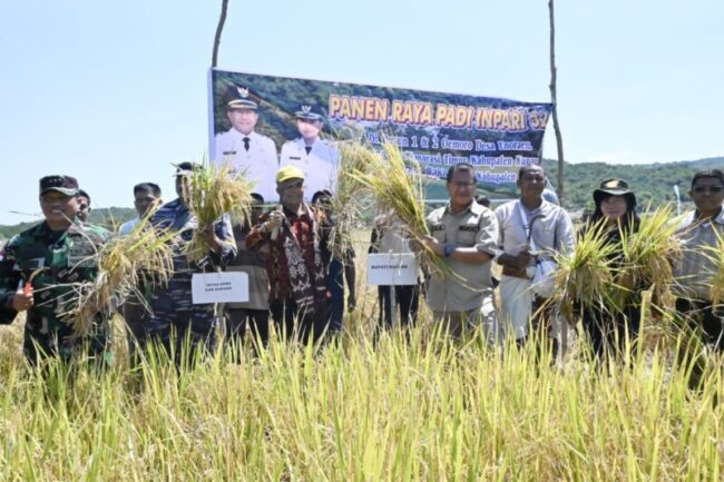 Bupati Yosef Lede merasa bersyukur atas panen raya padi yang dilakukan di Enoraen.