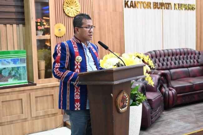 OELAMASI, FLOBAMORA-SPOT — Bupati Kupang, Yosef Lede, akhir pekan yang lalu membuka Rapat Koordinasi (rakor) Camat, Lurah dan Kepala Desa se Kabupaten Kupang, di aula Kantor Bupati Kupang, Oelamasi.