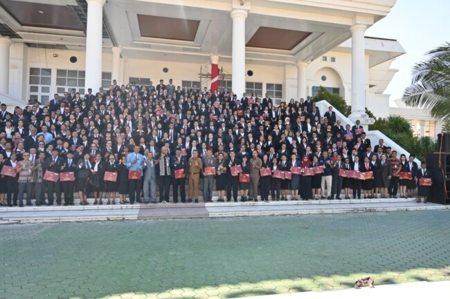 Sebagai bentuk penghargaan Bupati Kupang, terhadap pegawai negeri sipil yang memiliki loyalitas, kinerja dan prestasi, Yosef Lede menyerahkan satu persatu piagam penghargaan satyalancana karya satya kepada 544 PNS.