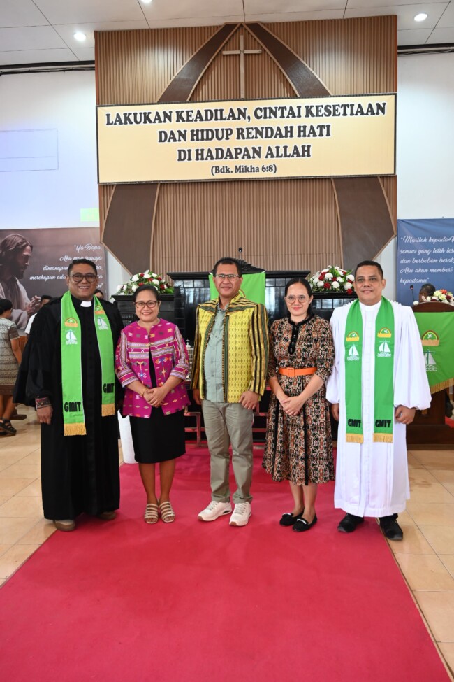 OELAMASI, FLOBAMORA-SPOT — Bupati Kupang, Yosef Lede, Minggu (5/10), menghadiri kebaktian minggu di Gereja Bukit Kasih di Desa Baumata Barat, Kecamatan Taebenu.