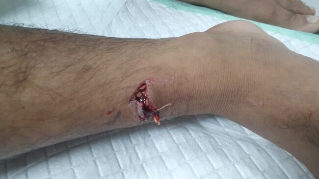 Fanda Tuan (20), luka gigitan di kaki kiri.