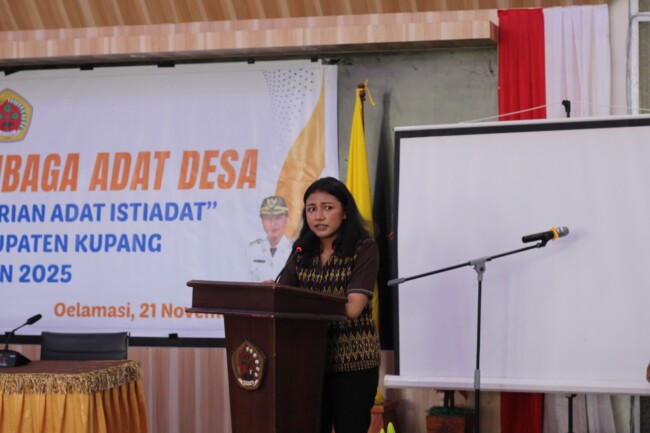 OELAMASI, FLOBAMORA-SPOT — Wakil Bupati Kupang, Aurum Titu Eki secara resmi membuka kegiatan Workshop Lembaga Adat Desa. Workshop berisi Pelestarian Adat Istiadat Tingkat Kabupaten Kupang Tahun 2025, bertempat di Kantor Bupati, Jumat (21/11/2025).