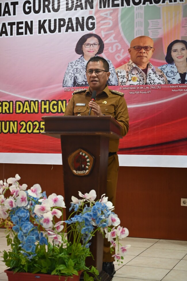 Dalam sambutannya, Bupati Kupang Yosef Lede menyampaikan apresiasi kepada seluruh guru yang hadir dan menegaskan peran penting guru dalam membangun masa depan bangsa.