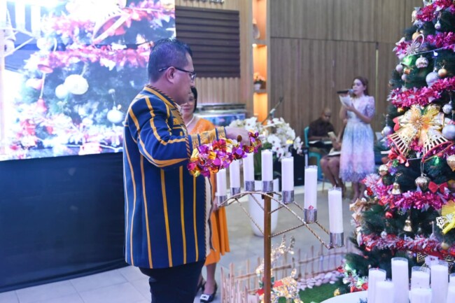 Bupati Kupang Yos Lede menyalakan lilin Natal pada perayaan natal bersama Pemkab Kupang.