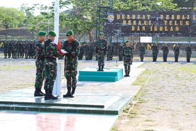 CAMPLONG, FLOBAMORA-SPOT.COM – Personil Brigif 21/Komodo mengikuti pelaksanaan upacara Memperingati Hari Bela Negara Tahun 2019. Upacara tersebut berlangsung di Lapangan II Makobrigif 21/Komodo, Kamis (19/12), dipimpin Kepala Staf Brigif 21/Komodo Letkol Inf Agus Setiandar, S.I.P.